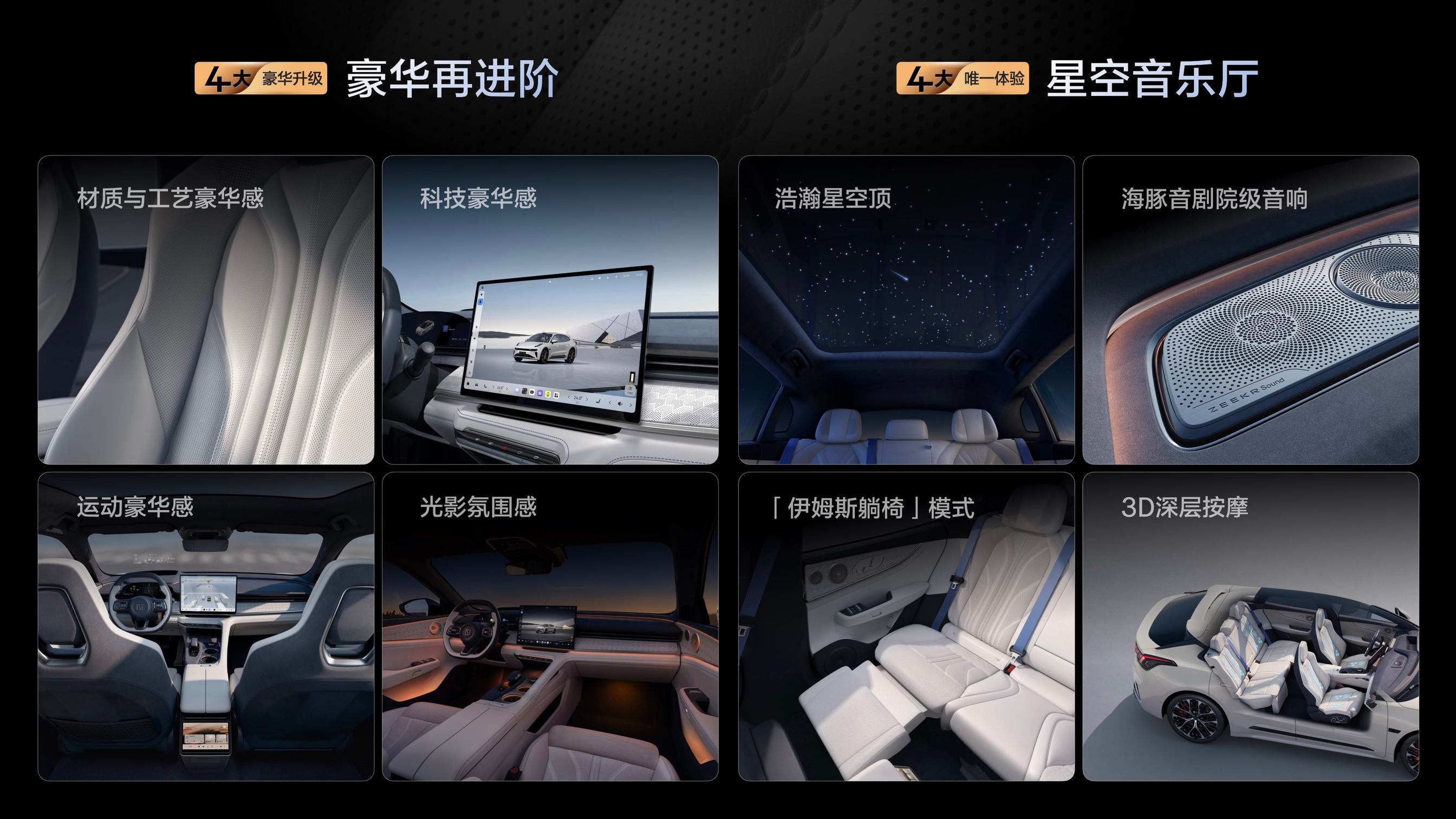 下一個(gè)版本的Ultra+就再貴3萬(wàn)元,達(dá)到31.98萬(wàn)元,增加電動(dòng)門、感應(yīng)式電尾門、星空天幕、光感天幕這些,還有贈(zèng)送的22英寸輪轂、Brembo六活塞卡鉗、碳纖維后視鏡等。