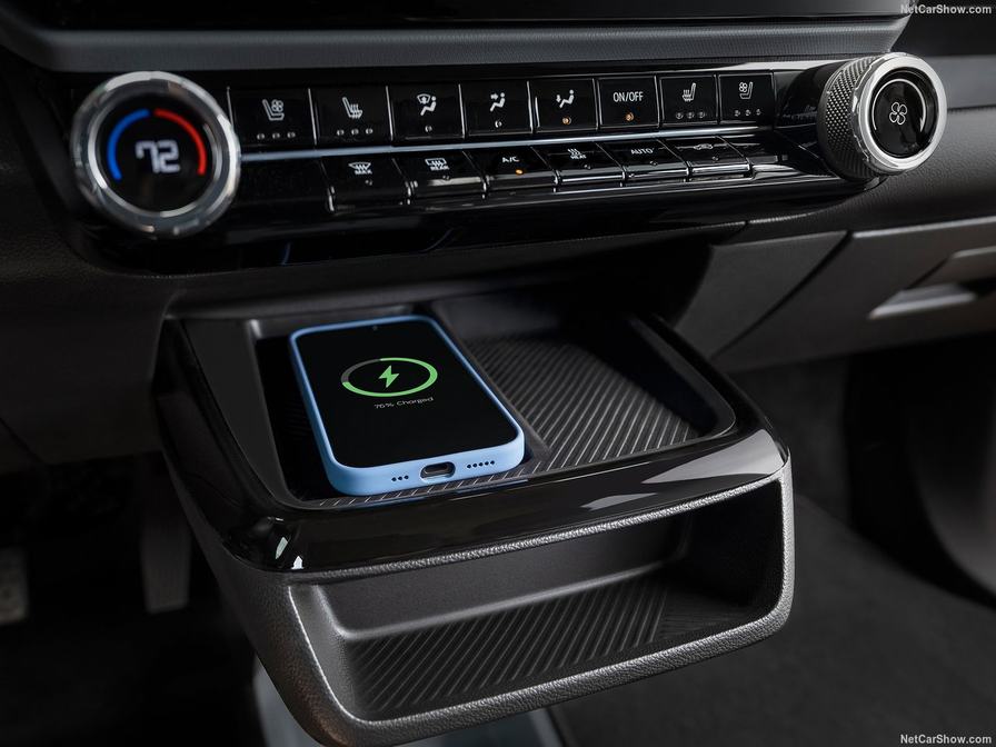 內飾部分,新Bolt和Bolt EUV的布局相同,方向盤樣式還是傳統三幅造型,使用物理按鍵和亮面飾條。較為不同的地方在于,除在IP臺裝配上更立體的飾板,新車還換用電子懷擋,解放出扶手前的區域,讓新Bolt前排主副駕之間沒有遮擋,可以布置較大的儲物槽,以及懸浮的手機充電島臺。