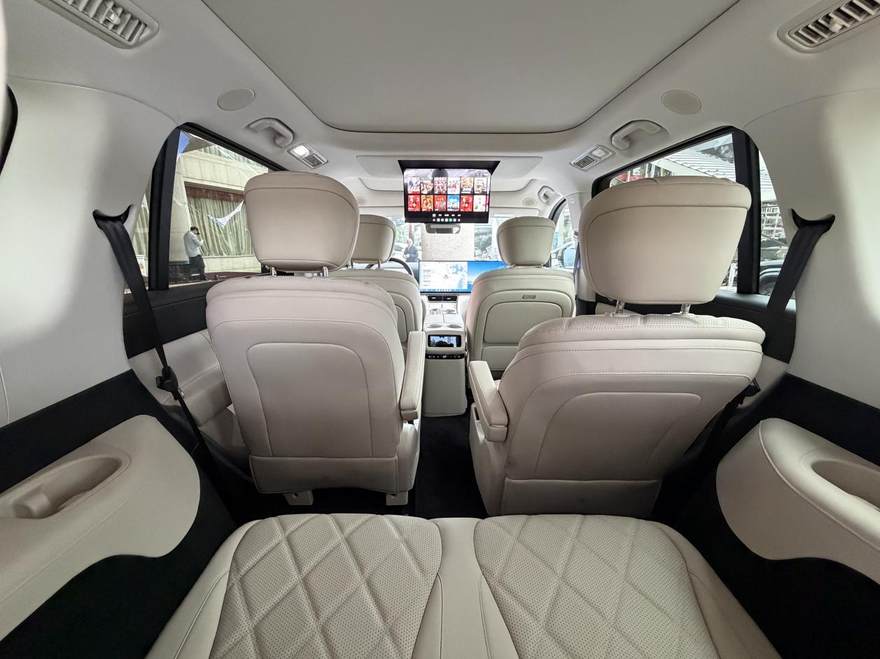 內飾方面,風云T11采用豪華舒適的簡約設計風格,多媒體中控屏+副駕娛樂屏組成的30英寸一體寰宇屏是全系標配,從次低配開始還會配備17.3英寸后排娛樂屏,配合伯牙之音23揚豪華音響系統,讓車內擁有非常出色的影音系統。車機提供AI大模型語音助手集成Deepseek,支持粵語、四川話2種方言識別,可實現六音區獨立識別,副駕或后排乘客可獨立喚醒等功能。風云T11采用2+2+2六座椅布局,第一排與第二排座椅均采用真皮材質包裹,配備通風、加熱、按摩功能,其中第二排座椅支持前后滑動與最大120°調節角度,同時還配有小桌板以及9.2L冷暖小冰箱。