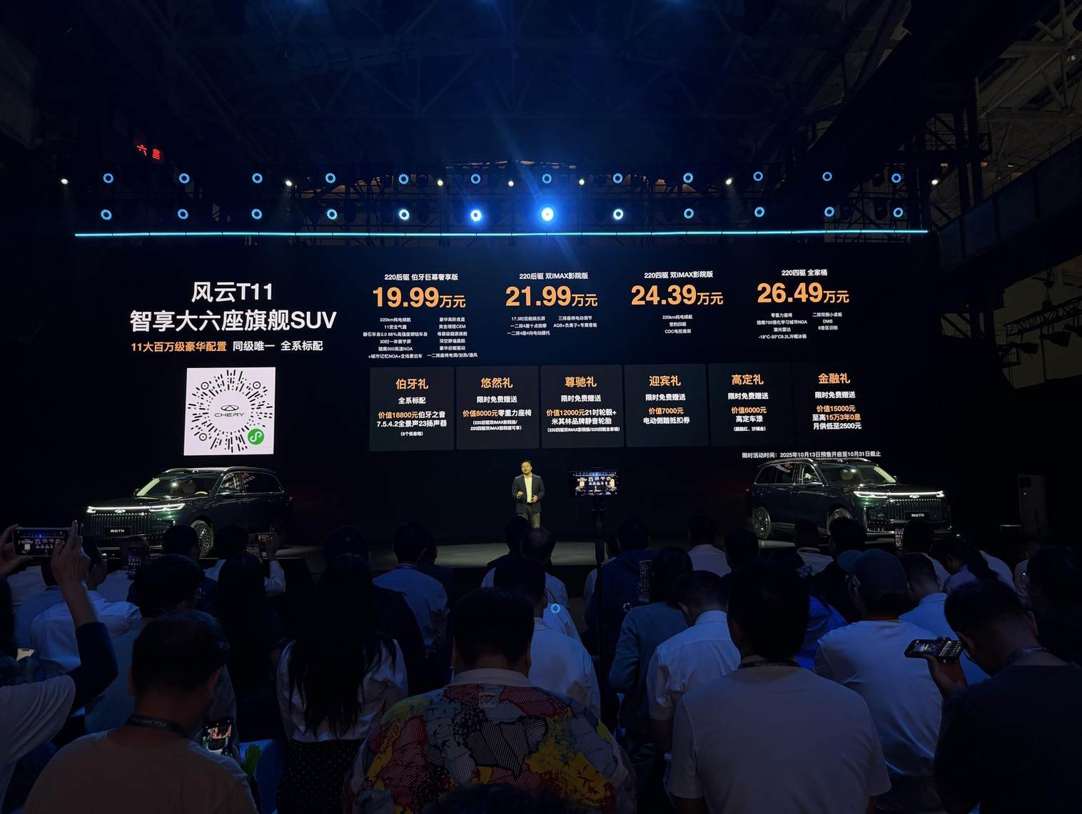 2025年10月13日,奇瑞風云T11正式開啟預售,共推出4款車型,預售價格區間為19.99萬-26.49萬元,定位上這款車屬于是大型SUV的級別。