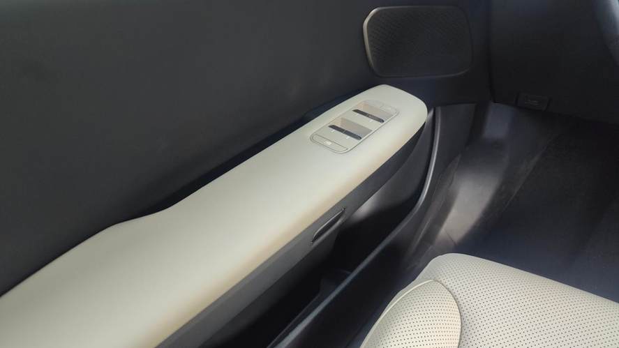 另外,前后排的車門是使用電子按鍵作為開關(guān)的,安裝位置在扶手下方,雖然有一點往內(nèi)的角度,但按鍵本身沒有做內(nèi)凹處理,可能會有誤觸的風(fēng)險。