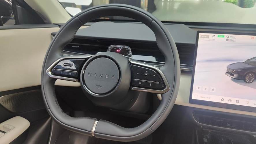 轉(zhuǎn)向的精準(zhǔn)度不錯,虛位很小,而且阻尼隨角度的變化很順暢,但不同駕駛模式之間的差別不太明顯,同時手感也沒有傳統(tǒng)的燃油馬自達那么重,路感反饋清晰度一般,電子味較明顯,但比EZ-6更自然。