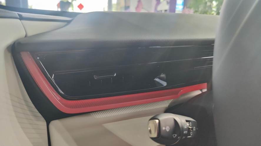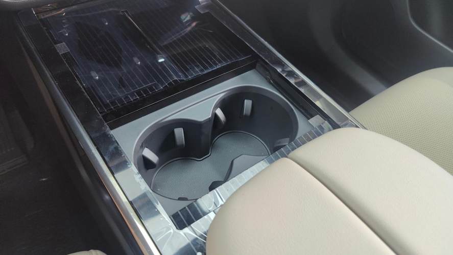 當(dāng)然,簡配的痕跡也不是沒有的,譬如副中控臺的部分,用料就是一如既往地拉,搭的黑色烤漆面板手感一般,是比較容易沾指紋的類型。而且后方杯架的蓋板沒有一個能夠用手摳的部位,拉開的操作不太順手。車?yán)锏奈兜酪灿幸稽c偏大。