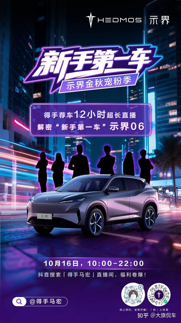 示界06不僅是一臺車,更是一種生活方式的載體。此次“馭示界見世界”青甘線體驗雖已結束,但示界06的探索之旅才剛剛開始。此刻,我們誠邀您共同見證:10月16日10:00-22:00,將在抖音「得手馬宏」直播間舉行“得手薦車”12小時超長直播,深度解密這款被譽為“新手第一車”的示界06。