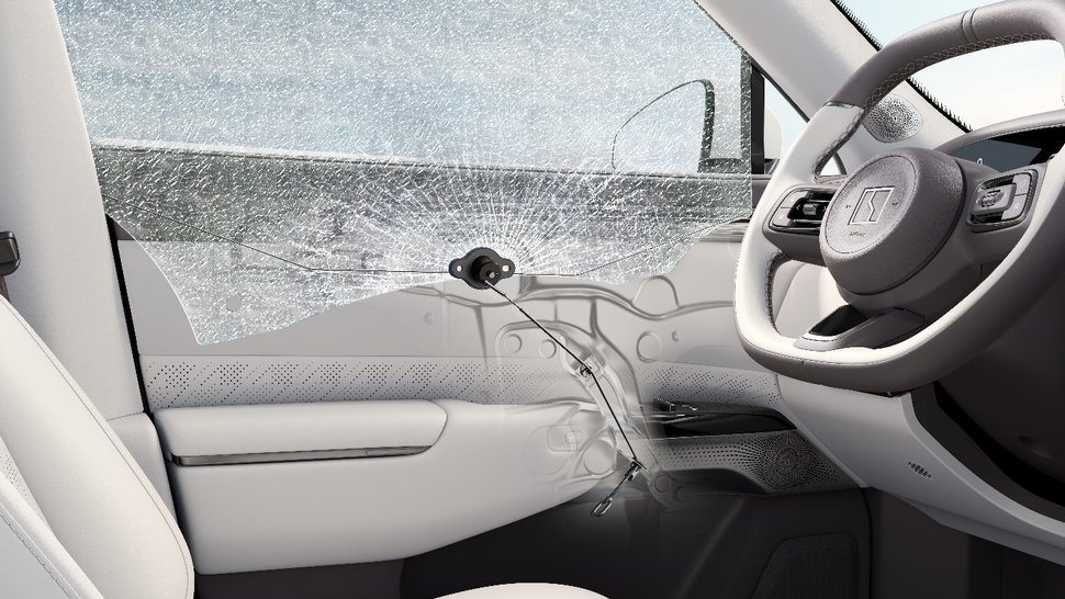 值得一提的是,區別于普通雙層夾膠玻璃,煥新極氪7X采用外層3.5mm鋼化玻璃+0.76mmPVB膠膜+ 內層1.1mm鋼化玻璃的設計,表層壓應力和內部張應力形成力學平衡,主駕安全破窗器可以輕松擊穿。