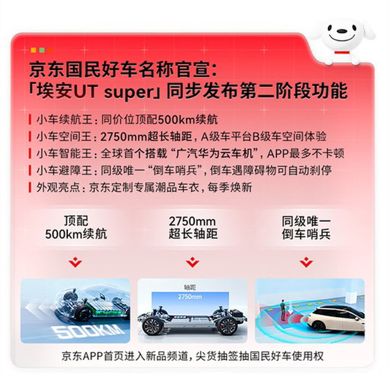 基于埃安UT車型打造而來的埃安UT super或許接下來成為京東的定制車型,它將采用京東專屬的潮品車衣,且每個季度可以煥新,完全是為京東的市場服務,它身上有了深深的京東“烙印”外,它除了在京東商城線上發售外,極有可能交付給京東快遞來實現快速物流配送,相比順豐快遞的小電摩要高大上許多。并且它的續航堪稱同級別榜首。