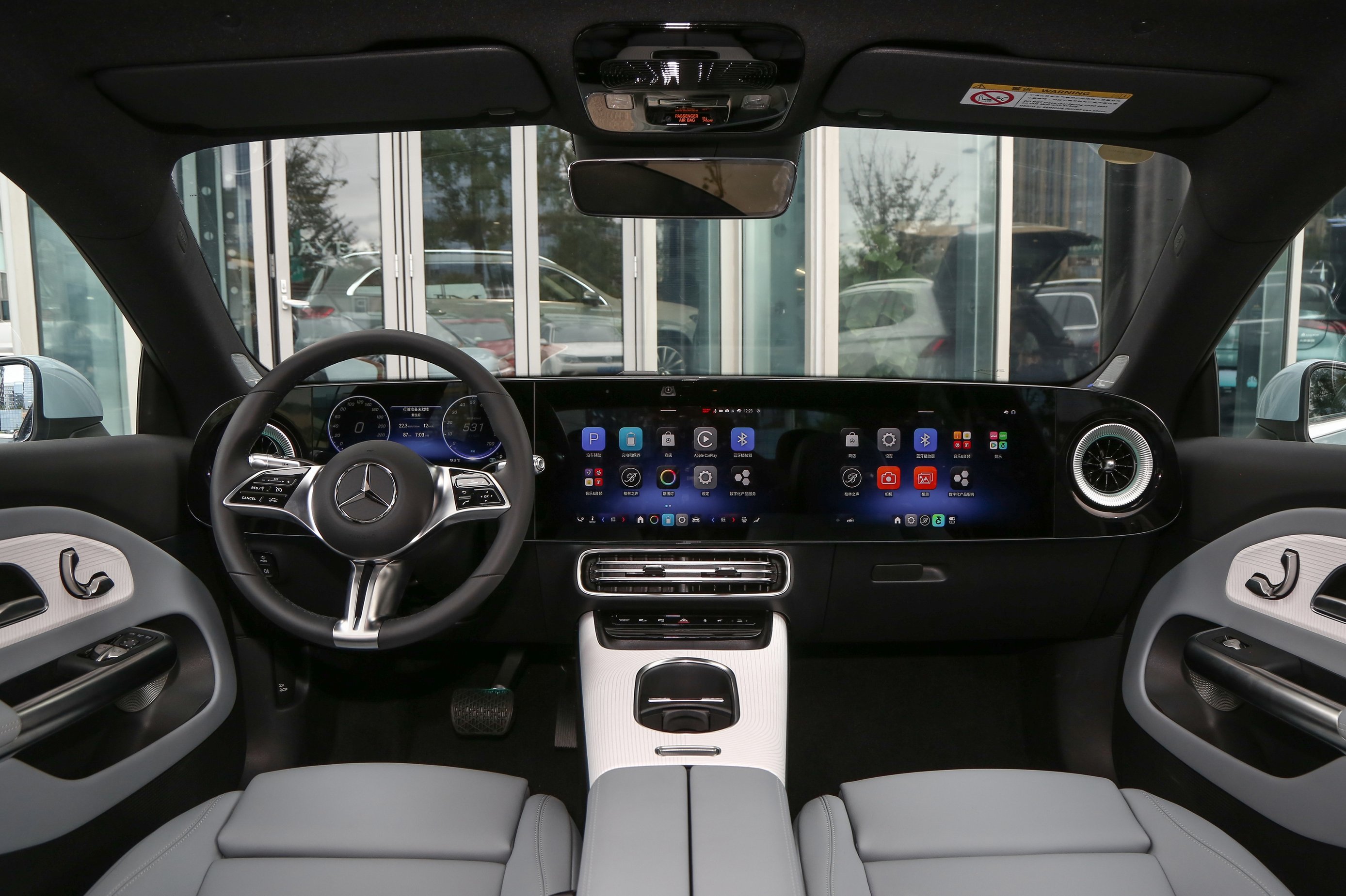 在科技配置上,奔馳CLA純電版車型全系標配10.25英寸全液晶儀表盤、14英寸的中控大屏,車機內置高通驍龍8295芯片。語音功能支持免喚醒以及連續對話,通過語音也可以控制座椅加熱、車窗和導航。手機也是5G網絡,支持OTA升級。方向盤加熱、手機無線充電和熱泵空調等,也都是全系車型標配。除入門版車型,其他兩個配置車型還配備有14英寸的副駕娛樂屏。