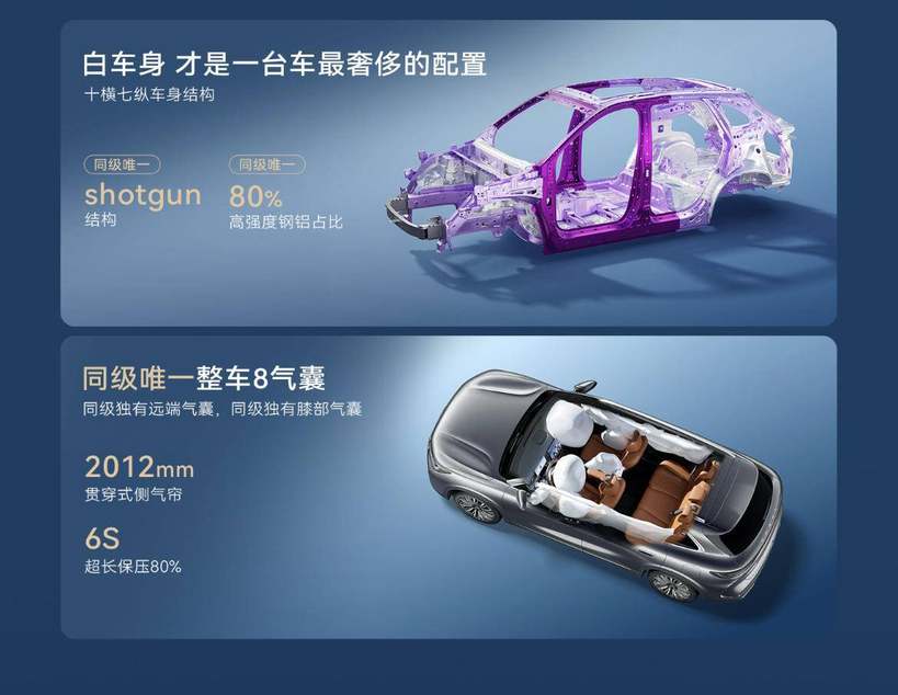 智能座艙方面,新車搭載電感智慧座艙,全系標配車規級8155芯片,虎款配備15.6英寸2.5k高清電影屏,豹款配備13.2英寸智能導航屏,2s車機啟動,30s可識別20+指令。AI語言大模型支持四音區交互,8揚聲器音響系統媲美五十萬級豪車,全品牌手機互聯映射與50W無線充電功能,實現“燃油車的身份證,新能源的體驗感”。ENC主動降噪、雙層夾膠靜音玻璃等63處聲學包裹設計,打造靜謐座艙環境。