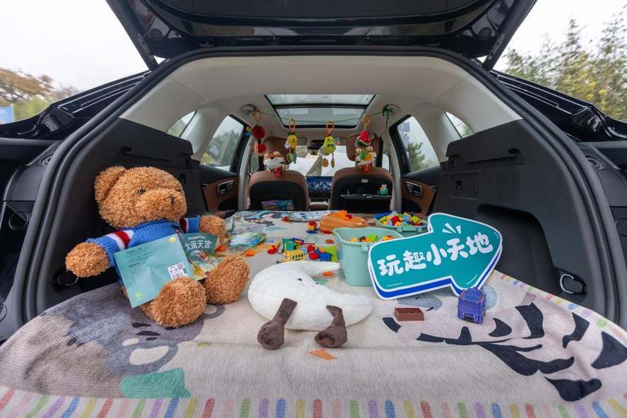 空間表現上,新車憑借2825mm同級最長軸距,實現84%超高空間得房率與970mm后排腿部空間,配合1431mm二排肩部空間,帶來寬敞舒適的大五座體驗。擴容式雙層后備箱容積可達1453L,全車46處儲物空間滿足家庭出行收納需求。更有同級唯一的電感沙灘椅(前排170°可放倒)、承重15kg的全場景小桌板、10層悠然座椅及主動香氛系統,從實用到舒享,全方位提升出行品質,秒變“移動香薰SPA房”與“補習班等娃神器”。