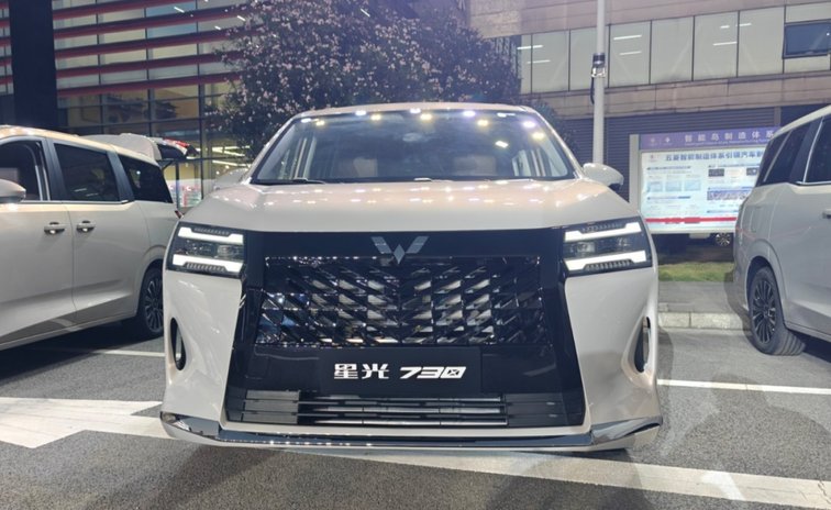 不同于傳統MPV的商務感,星光730走的是溫馨、精致的家用路線。造型上,新車采用五菱最新的“星耀美學”設計語言,大尺寸六邊形進氣格柵內部嵌入點陣式鍍鉻飾條,搭配兩側造型圓潤的LED 大燈組和“星芒”日行燈,辨識度拉滿。