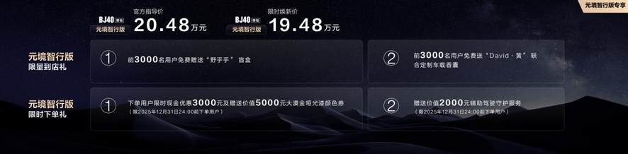 限時(shí)煥新價(jià)19.48萬元,BJ40增程元境智行版正式上市!