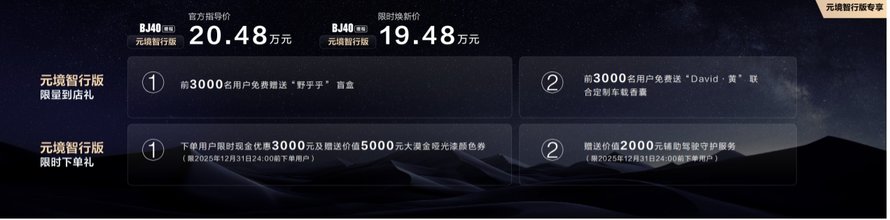 BJ40增程元境智行版正式上市,限時煥新價19.48萬,零百加速5.5秒