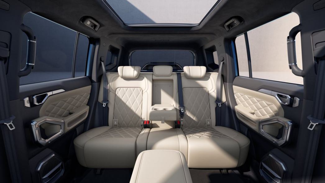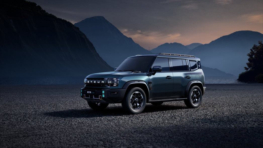 - 四擎四驅,7000N·m輪端扭矩,1.5TD+三電機混動方案,行業首創。