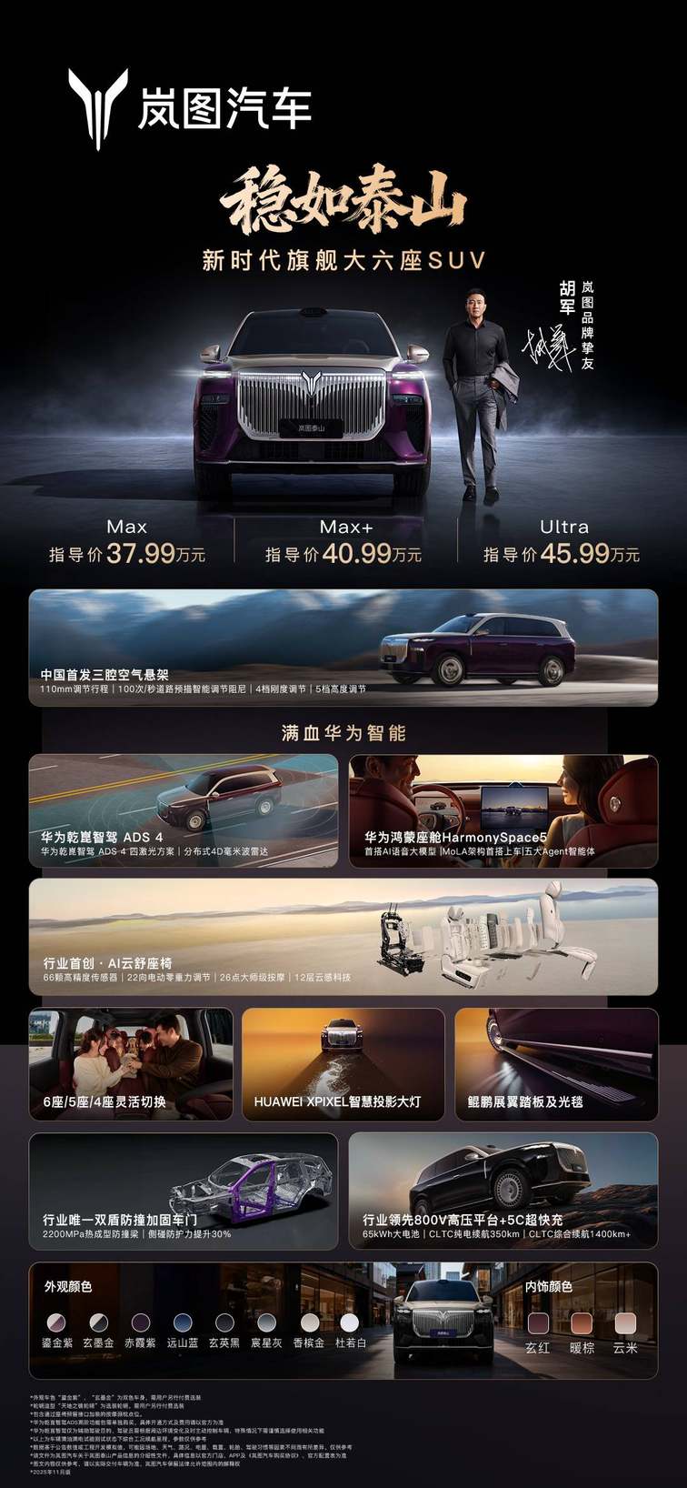 37.99萬起誰與“爭峰”! 嵐圖泰山正式上市旗艦SUV市場徹底洗牌